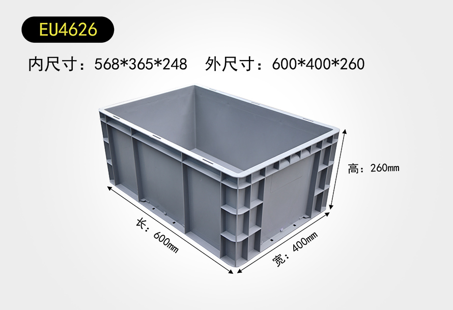 | EU4626物流箱 | 568*365*248 | 600*400*260 | 灰/白/藍 | 印字/燙金 |